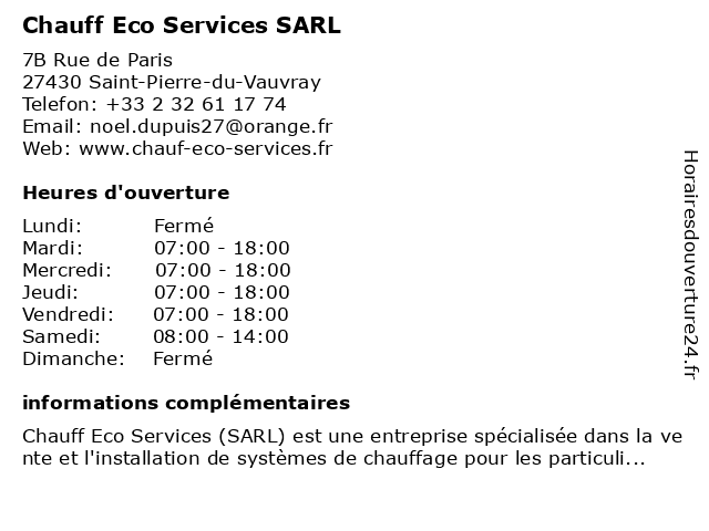 | Lundi | Fermé |
