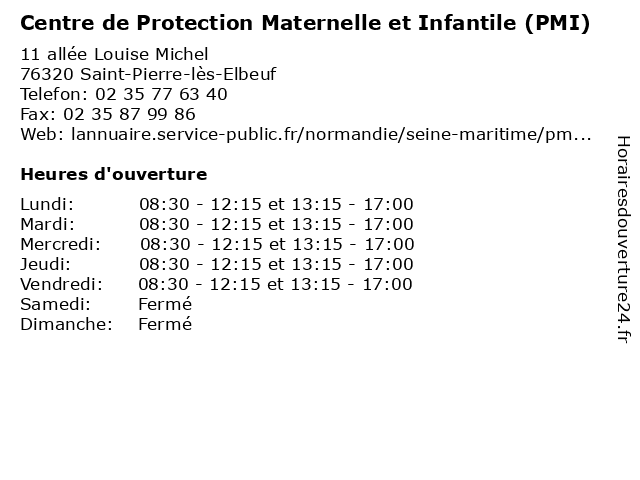 | Lundi | 08:30-12:15 et 13:15-17:00 |