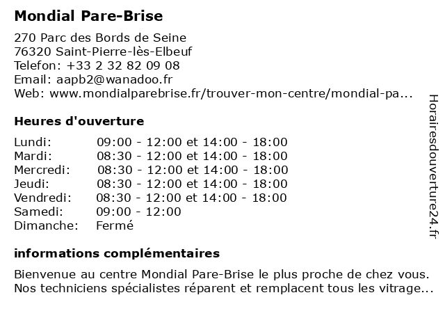 | 1 Mondial Pare-Brise (Distance: 12,63 km) 36 Place du Champ de ville, 27400 Louviers brise, mondial, pare 2 Mondial Pare-Brise (Distance: 15,53 km) 90 Rue des Portes de Franqueville, 76520 Franqueville-Saint-Pierre brise, mondial, pare 4 Mondial Pare-Brise (Distance: 16,33 km) 100, rue Lafayette, 76100 ROUEN brise, centers, machinery, mondial, optical headlight wipers, pare, rear window, repair, services, side, technical, vehicle, windows, windshield 6 Mondial Pare-Brise - Point Relais (Distance: 0,18 km) Route de Pont-de-l'Arche, 76320 Saint-Pierre-lès-Elbeuf brise, mondial, pare, point, relais |