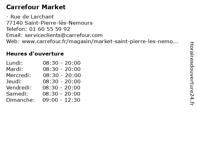 1 Carrefour Market (Distance: 13,99 km) 12 Rue De Nisceville, 77570 Château Landon carrefour, discount, dépanneurs, hard, hypermarchés, market, supermarchés 2 Carrefour Market (Distance: 16,05 km) 11 Rue de l'Orvanne, 77250 Ecuelles alimentation, carrefour, magasin discount, market, supermarché 3 Carrefour Market (Distance: 16,52 km) 36 Avenue Franklin Roosevelt, 77210 Avon carrefour, electrical appliances, furnitures, garden equipment, market, shelving 4 Carrefour Market (Distance: 16,95 km) 2 Rue Jean Cocteau, 77430 Champagne Sur Seine carrefour, electrical appliances, furnitures, garden equipment, market, shelving 5 Carrefour Location (Distance: 1,12 km) - Rue De Larchant, 77140 Saint-Pierre-lès-Nemours agence, carrefour, location, utilitaires, véhicules 6 Carrefour Contact (Distance: 1,86 km) 88 Rue de Paris, 77140 Nemours alimentation, carrefour, contact, magasin discount, market, supermarché |