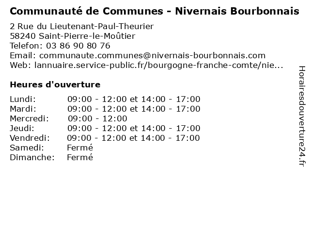 Termes de recherche pour Communauté de Communes - Nivernais Bourbonnais:de, administration, communes, communauté, services publics, nivernais, bourbonnais |