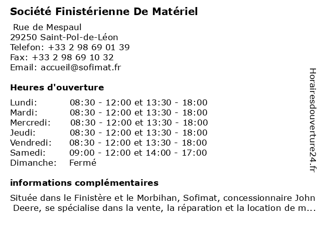 | Lundi | 08:30-12:00 et 13:30-18:00 |