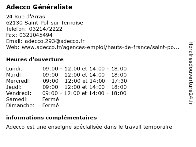 1 Adecco Onsite Marles Automobile (Distance: 17,38 km) - Rue de la Fosse, 62540 Marles-les-Mines adecco, agences, automobile, cdd, cdi, emploi, emploi intérim, marles, onsite, services 2 Agence d'Intérim Manpower Espace Saint-Pol-sur-Ternoise (Distance: 0,12 km) 23 Rue des Carmes, 62130 Saint-Pol-sur-Ternoise agence, agence de recrutement, agence intérim, agence pour l'emploi, cabinet de recrutement, cdi, d'intérim, espace, intérim, manpower, pol, recrutement, saint, sur, ternoise 3 Adecco Onsite Ruitz Automobile (Distance: 21,11 km) - Zone industrielle, 62620 Ruitz adecco, agences, automobile, cdd, cdi, emploi, emploi intérim, onsite, ruitz, services 4 Adecco Généraliste (Distance: 21,16 km) 5 Rue de l'Arsenal, 62140 Hesdin adecco, agences, cdd, cdi, emploi, emploi intérim, généraliste, services 5 Adecco Généraliste (Distance: 41,47 km) 187 Rue de Dunkerque, 62500 Saint-Omer adecco, agences, cdd, cdi, emploi, emploi intérim, généraliste, services 6 Adecco Onsite Henin Beaumont Agroalimentaire (Distance: 45,32 km) 712 Chemin de Noyelles, 62110 Hénin-Beaumont adecco, agences, agroalimentaire, beaumont, cdd, cdi, emploi, emploi intérim, henin, onsite, services |