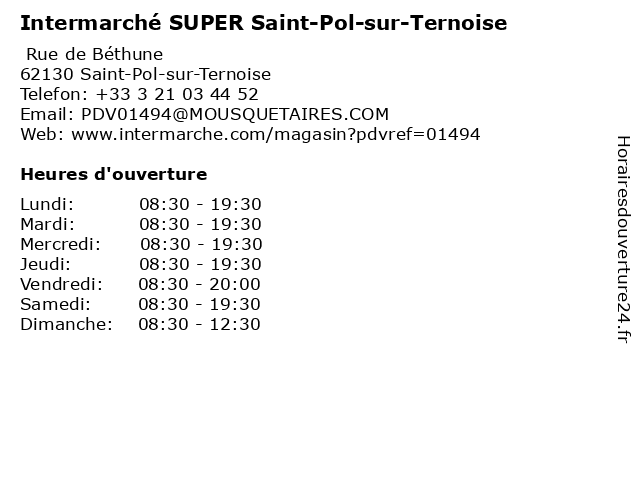 Termes de recherche pour Intermarché SUPER Saint-Pol-sur-Ternoise:sur, saint, intermarché, pol, ternoise, super |