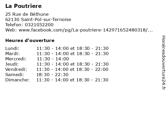 | Mardi | 11:30-14:00 et 18:30-21:30 |