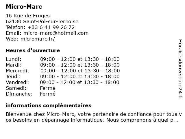 | Lundi | 09:00-12:00 et 13:30-18:00 |