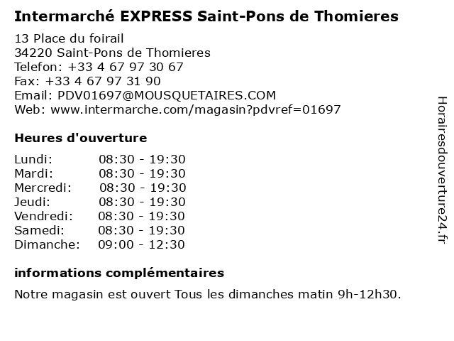 Termes de recherche pour Intermarché EXPRESS Saint-Pons de Thomieres:de, saint, intermarché, express, pons, thomières |
