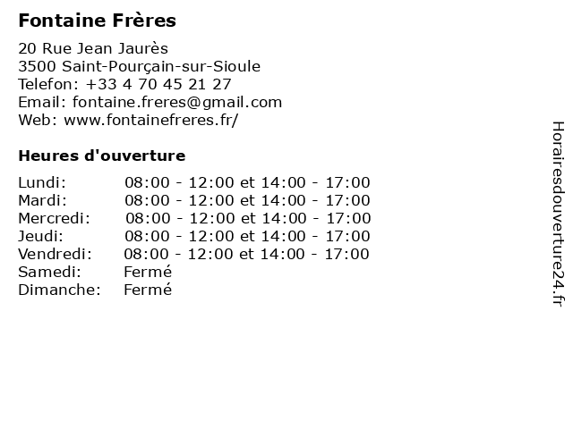 | Lundi | 08:00-12:00 et 14:00-17:00 |