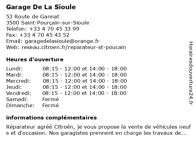 | Lundi | 08:15-12:00 et 14:00-18:00 |