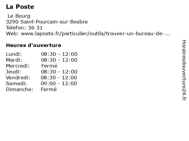 1 La Poste (Distance: 3,39 km) 2 rue du Stade, 03220 Vaumas agence, assurance, banque, banque postale, bureau de poste, chronopost, colis, courrier, dps, expéditions internationales, la, point, postale, poste, relais, timbres, téléphonie, ups, western union 2 La Poste (Distance: 8,37 km) 11 route du Donjon, 03470 Saligny-sur-Roudon agence, assurance, banque, banque postale, bureau de poste, chronopost, colis, courrier, dps, expéditions internationales, la, point, postale, poste, relais, timbres, téléphonie, ups, western union 3 La Poste (Distance: 8,60 km) - Le Bourg, 03220 Saint-Léon agence, colis, courriers, expédition, la, postale, poste, relais 4 La Poste (Distance: 8,79 km) Le Bourg, 03220 Thionne agence, assurance, banque, banque postale, bureau de poste, chronopost, colis, courrier, dps, expéditions internationales, la, point, postale, poste, relais, timbres, téléphonie, ups, western union 5 La Poste (Distance: 10,37 km) 40 grand Rue, 03290 Diou agence, assurance, banque, banque postale, bureau de poste, chronopost, colis, courrier, dps, expéditions internationales, la, point, postale, poste, relais, timbres, téléphonie, ups, western union 6 La Poste (Distance: 11,39 km) - Le Bourg, 03220 Jaligny-sur-Besbre agence, assurance, banque, banque postale, bureau de poste, chronopost, colis, courrier, dps, expéditions internationales, la, point, postale, poste, relais, timbres, téléphonie, ups, western union |