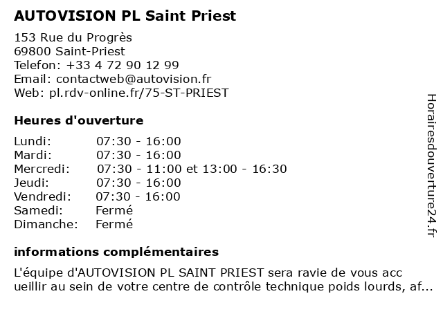 Termes de recherche pour AUTOVISION PL Saint Priest:saint, autovision, priest, pl |