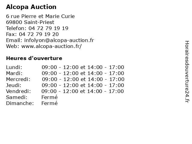 | Mardi | 09:00-12:00 et 14:00-17:00 |