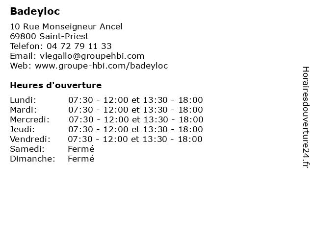 | Vendredi | 07:30-12:00 et 13:30-18:00 |