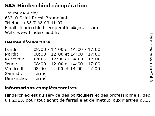 | Lundi | 08:00-12:00 et 14:00-17:00 |