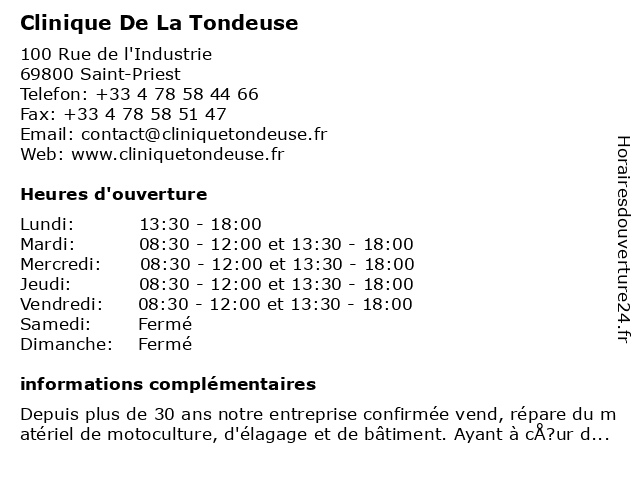 | Mardi | 08:30-12:00 et 13:30-18:00 |