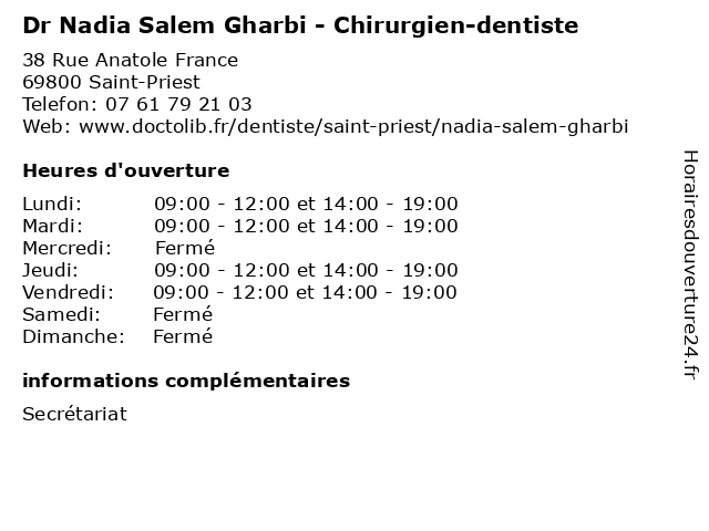 | Lundi | 09:00-12:00 et 14:00-19:00 |