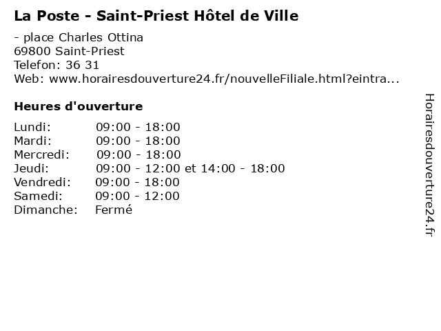 Termes de recherche pour La Poste - Saint-Priest Hôtel de Ville:poste, relais, la, de, saint, ville, hôtel, agence, postale, colis, priest, expédition, courriers |