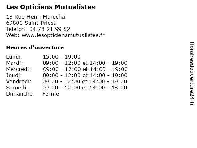 | Mardi | 09:00-12:00 et 14:00-19:00 |