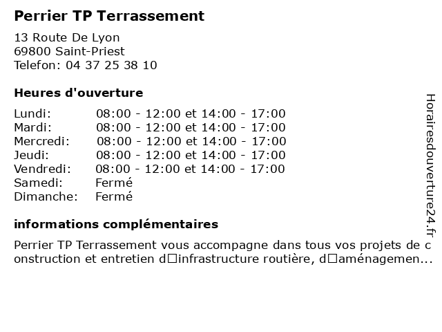 1 Perrier TP VRD (Distance: 0,02 km) 13 Route De Lyon, 69800 Saint-Priest entreprise générale de construction, perrier, tp, vrd 2 Premys - Agence Perrier Déconstruction (Distance: 0,23 km) 15 Route De Lyon, 69800 Saint Priest agence, constructeur, déconstruction, entreprise générale de construction, perrier, premys 3 Plattard Négoce TP Lyon (Distance: 3,04 km) 2 Rue Louis Pradel, 69960 Corbas bois, carrelage, lyon, matériaux de construction, menuiserie, négoce, plattard, sanitaire, tp, travaux publics 4 Pharmacie Perrier (Distance: 3,81 km) 159 Avenue Franklin Roosevelt, 69500 Bron herboristerie, médicaments, paramédical, parapharmacie, perrier, pharmacie, pharmacien, santé, traitements 6 |