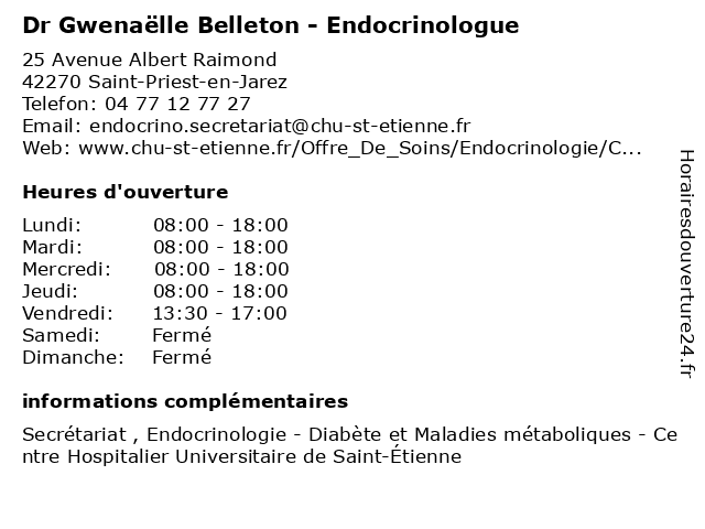 1 Dr Natacha Germain - Endocrinologue (Distance: 0,00 km) 25 Avenue Albert Raimond, 42270 Saint-Priest-en-Jarez consultation, docteur, dr, endocrinologue, germain, med, médecin, médecine, natacha, traitement 2 Dr Bogdan Danut Galusca - Endocrinologue (Distance: 0,00 km) 25 Avenue Albert Raimond, 42270 Saint-Priest-en-Jarez bogdan, consultation, danut, docteur, dr, endocrinologue, galusca, med, médecin, médecine, traitement 3 Dr Lyadh Khalfallah - Endocrinologue (Distance: 0,00 km) 25 Avenue Albert Raimond, 42270 Saint-Priest-en-Jarez consultation, docteur, dr, endocrinologue, khalfallah, lyadh, med, médecin, médecine, traitement 4 Dr Nesrine Marouani-Guergouri - Endocrinologue (Distance: 0,00 km) 25 Avenue Albert Raimond, 42270 Saint-Priest-en-Jarez consultation, docteur, dr, endocrinologue, guergouri, marouani, med, médecin, médecine, nesrine, traitement 5 Dr Patricia Degrelle-Voitellier - Endocrinologue (Distance: 0,00 km) 25 Avenue Albert Raimond, 42270 Saint-Priest-en-Jarez consultation, degrelle, docteur, dr, endocrinologue, med, médecin, médecine, patricia, traitement, voitellier 6 Dr Marielle Rollin Bethenod - Endocrinologue (Distance: 3,36 km) 9 Rue d'Arcole, 42000 Saint-Étienne bethenod, dr, endi, endocrinologue, marielle, medecin, rollin, sante |