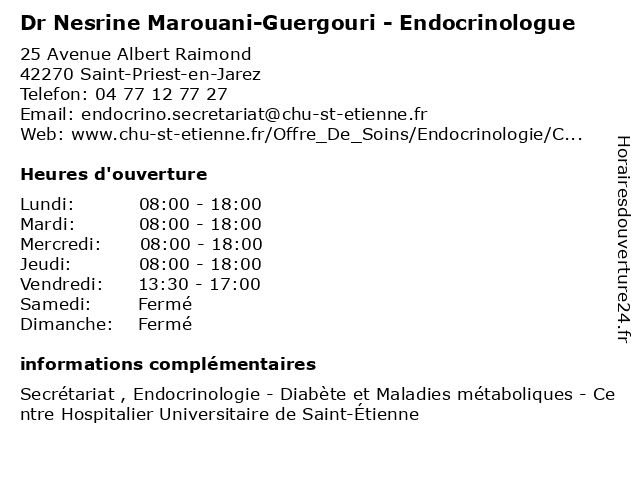 1 Dr Natacha Germain - Endocrinologue (Distance: 0,00 km) 25 Avenue Albert Raimond, 42270 Saint-Priest-en-Jarez consultation, docteur, dr, endocrinologue, germain, med, médecin, médecine, natacha, traitement 2 Dr Bogdan Danut Galusca - Endocrinologue (Distance: 0,00 km) 25 Avenue Albert Raimond, 42270 Saint-Priest-en-Jarez bogdan, consultation, danut, docteur, dr, endocrinologue, galusca, med, médecin, médecine, traitement 3 Dr Gwenaëlle Belleton - Endocrinologue (Distance: 0,00 km) 25 Avenue Albert Raimond, 42270 Saint-Priest-en-Jarez belleton, consultation, docteur, dr, endocrinologue, gwenaelle, gwenaëlle, med, médecin, médecine, traitement 4 Dr Lyadh Khalfallah - Endocrinologue (Distance: 0,00 km) 25 Avenue Albert Raimond, 42270 Saint-Priest-en-Jarez consultation, docteur, dr, endocrinologue, khalfallah, lyadh, med, médecin, médecine, traitement 5 Dr Patricia Degrelle-Voitellier - Endocrinologue (Distance: 0,00 km) 25 Avenue Albert Raimond, 42270 Saint-Priest-en-Jarez consultation, degrelle, docteur, dr, endocrinologue, med, médecin, médecine, patricia, traitement, voitellier 6 Dr Marielle Rollin Bethenod - Endocrinologue (Distance: 3,36 km) 9 Rue d'Arcole, 42000 Saint-Étienne bethenod, dr, endi, endocrinologue, marielle, medecin, rollin, sante |