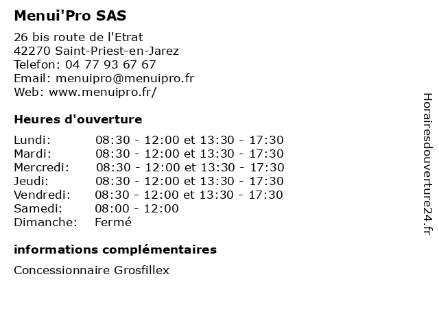 | Lundi | 08:30-12:00 et 13:30-17:30 |
