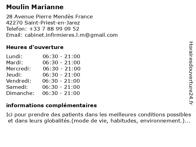 | Lundi | 06:30-21:00 |
