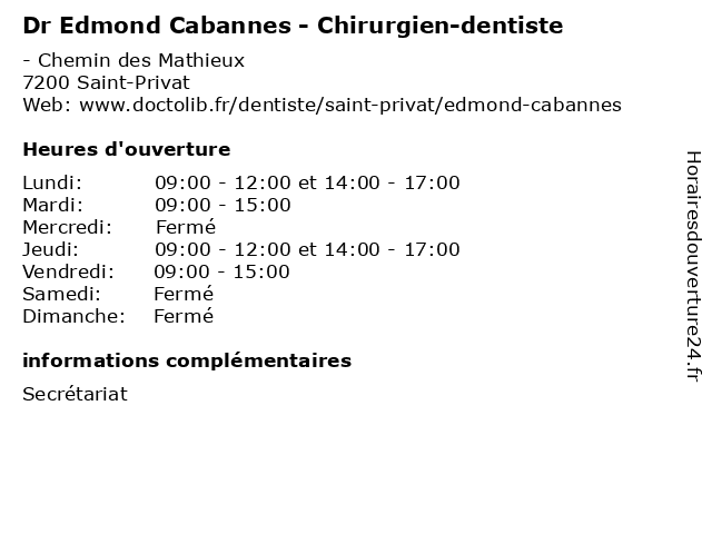 | Lundi | 09:00-12:00 et 14:00-17:00 |