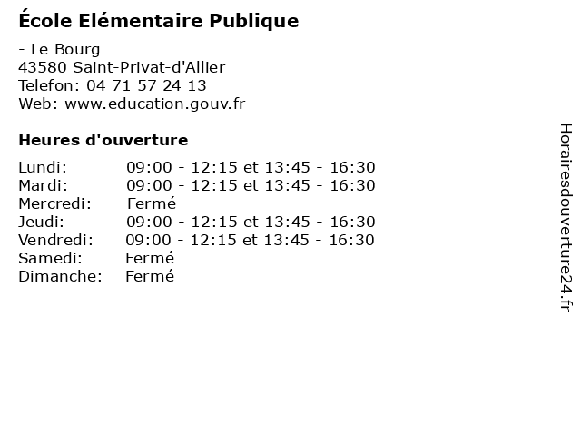 1 École Elémentaire Publique (Distance: 6,08 km) - Le Bourg, 43300 Siaugues-Sainte-Marie cours, education, elémentaire, primaire, publique, services, école, élémentaire 2 École Elémentaire Publique (Distance: 8,99 km) - Le Bourg, 43320 Saint-Jean-de-Nay cours, education, elémentaire, publique, services, école, élémentaire 3 École Elémentaire Publique (Distance: 11,07 km) - Le Bourg, 43370 Saint-Christophe-sur-Dolaison cours, education, elémentaire, publique, services, école, élémentaire 4 École Elémentaire Publique (Distance: 11,07 km) - Le Bourg, 43320 Sanssac-l'Église cours, education, elémentaire, publique, services, école, élémentaire 5 École Elémentaire Publique (Distance: 12,12 km) - Route de Collanges, 43320 Loudes cours, education, elémentaire, publique, services, école, élémentaire 6 École Elémentaire Publique (Distance: 13,95 km) - Le Bourg, 43320 Vazeilles-Limandre cours, education, elémentaire, primaire, publique, services, école, élémentaire |