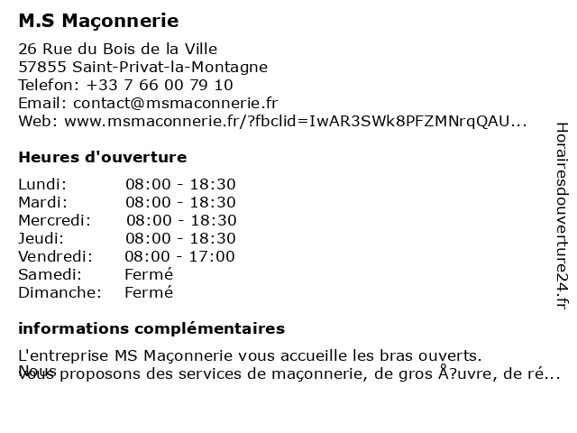 1 MS Construction (Distance: 6,22 km) 4 Rue des Hirondelles, 57535 Marange-Silvange construction, maçonnerie, ms, piscine, rénovation 2 C H CONSTRUCTION (Distance: 10,80 km) 17 Rue Principale, 57140 La Maxe construction, gros oeuvre, maçonnerie, neuf, rénovation 3 VINCY ETUDE COMCEPTION V.E.C (Distance: 11,15 km) 14 Rue Joseph Mées, 57525 Talange aménagement extérieur, comception, enrobé, etude, pavage, petite maçonnerie, pose de béton imprimé, pose de résine au sol, pose de tapis de marbre, poseur de résine, terrassement, terrassier, v.e.c, vincy 4 Brizion - SARL (Distance: 12,25 km) 16 Zac Geslin, 54800 Labry brizion, construction, isolation, maçonnerie, rénovation, sarl 5 MULTI SERVICE 57 (Distance: 12,47 km) 44 Rue Litaldus, 57950 Montigny-lès-Metz 57, démolition, entretien exterieur, maçonnerie, multi, nettoyage haute pression, sablage, service, terasse, travaux multiples 6 RC Bat (Distance: 12,76 km) 58-60 Route de Metz, 57130 Jouy aux Arches bat, charpente, couverture, maçonnerie, peinture, rc |