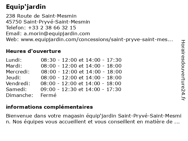 | Samedi | 09:00-12:30 et 14:00-17:30 |