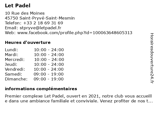 1 LET PADEL FLEURY (Distance: 4,98 km) 20 Rue André Dessaux, 45400 Fleury-les-Aubrais fleury, let, padel |
