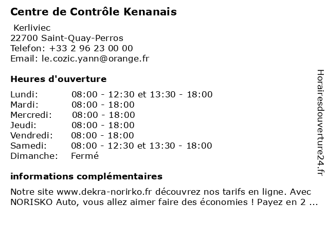 1 Centre contrôle technique NORISKO (Distance: 0,08 km) Lieu-dit Kerliviec, 22700 Saint-Quay-Perros 4x4, camping car, centre, collection, contrôle, diesel, electrique, essence, gazole, norisko, suv, technique, utilitaire, voiture 2 CENTRE DE CONTROLE KENANAIS NORISKO (Distance: 0,10 km) Kerliviec, 22700 Saint Quay Perros centre, controle, de, kenanais, norisko 3 Sécuritest Contrôle Technique Automobile (Distance: 4,22 km) 3 Rue Robert Surcouf, 22300 Lannion automobile, centre contrôle technique, contre visite, contrôle, contrôle pollution, contrôle technique, contrôle technique automobile, securitest, sécuritest, technique, véhicules léger 4 Sécuritest Contrôle Technique Automobile (Distance: 15,10 km) D786 Rue Kerfolic, 22220 Minihy-Tréguier automobile, centre contrôle technique, contre visite, contrôle, contrôle pollution, contrôle technique, contrôle technique automobile, securitest, sécuritest, technique, véhicules léger 5 Centre contrôle technique DEKRA (Distance: 18,19 km) 86d Avenue des Frères le Gall, 22310 Plestin-les-Grèves 4x4, camping car, centre, collection, contrôle, dekra, diesel, electrique, essence, gazole, suv, technique, utilitaire, voiture 6 Autovision - CCT Lannionnais (Distance: 7,71 km) - Zone Artisanale de Bel Air, 22300 Ploulec'h automobile, autovision, cct, contrôle technique, lannionnais, maintenance |