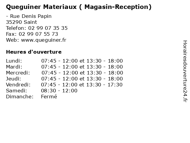 | Vendredi | 07:45-12:00 et 13:30-17:30 |