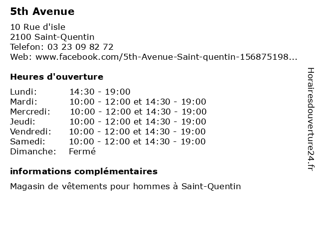 | Jeudi | 10:00-12:00 et 14:30-19:00 |