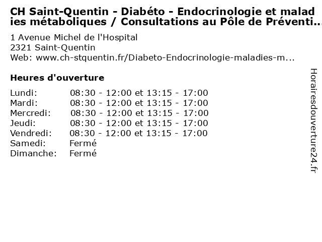 Termes de recherche pour CH Saint-Quentin - Diabéto - Endocrinologie et maladies métaboliques / Consultations au Pôle de Prévention Vasculaire et d'éducation (PPVE) SITE CORDIER:et, de, saint, au, quentin, bureau, pole, site, ch, prévention, consultation, consultations, cordier, maladies, métaboliques, endocrinologie, vasculaire, d'education, diabéto, ppve |