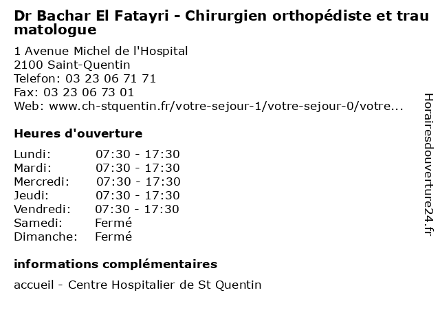 1 Dr Fouad El Dirani - Médecin généraliste (Distance: nan km) 1 Avenue Michel de l'Hospital, 02100 Saint-Quentin consultation, dirani, docteur, dr, el, fouad, généraliste, med, médecin, traitement 2 Dr François Deroussen - Chirurgien orthopédiste et traumatologue (Distance: nan km) 1 Avenue Michel de l'Hospital, 02100 Saint-Quentin chirurgien, deroussen, dr, et, françois, médecins, médicaments, orthopédiste, santé, secrétariat, spécialiste, traumatologue 3 Dr Richard Gouron - Chirurgien orthopédiste et traumatologue (Distance: nan km) 1 Avenue Michel de l'Hospital, 02100 Saint-Quentin chirurgien, dr, et, gouron, médecins, médicaments, orthopédiste, richard, santé, secrétariat, spécialiste, traumatologue 4 Dr Halima El Hajoui - Anesthésiste réanimatrice (Distance: 0,02 km) 1 Avenue Michel de l'Hospital, 02100 Saint-Quentin anesthésiste, consultation, docteur, dr, el, hajoui, halima, med, médecin, réanimatrice, traitement 5 Dr Alexandrine Borowski -Chirurgien orthopédiste et traumatologue (Distance: 0,02 km) 1 Avenue Michel de l'Hospital, 02100 Saint-Quentin alexandrine, borowski, chirurgien, consultation, docteur, dr, et, med, médecin, orthopédiste, traitement, traumatologue 6 Medecin Alexandru Cobileac (Chirurgien orthopédiste et traumatologue) (Distance: 0,37 km) 1 Avenue Michel de l'Hospital, 02100 Saint Quentin alexandru, chirurgien, cobileac, docteur, et, medecin, orthopédiste, sante, services, traumatologue |