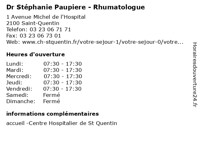 1 Stéphanie Daussin - Sage-femme (Distance: nan km) 1 Avenue Michel de l'Hospital, 02100 Saint-Quentin daussin, femme, médecins, médicaments, sage, santé, secrétariat, spécialiste, stéphanie 2 Dr Clémence Penet - Rhumatologue (Distance: nan km) 1 Avenue Michel de l'Hospital, 02100 Saint-Quentin clémence, dr, médecins, médicaments, penet, rhumatologue, santé, secrétariat, spécialiste 3 Dr Alice Sejourne - Rhumatologue (Distance: nan km) 1 Avenue Michel de l'Hospital, 02100 Saint-Quentin alice, dr, médecins, médicaments, rhumatologue, santé, secrétariat, sejourne, spécialiste 4 Stéphanie Bourillon - Sage-femme (Distance: 3,09 km) 1 boulevard du Docteur Schweitzer, 02100 Saint-Quentin bourillon, consultation, docteur, dr, femme, med, médecin, sage, stephanie, stéphanie, traitement 5 Dr Florence Millot - Rhumatologue (Distance: 3,09 km) 1 Boulevard du Docteur Schweitzer, 02100 Saint-Quentin dr, florence, millot, rhumatisme, rhumatologue, sante, soins 6 Cabinet infirmier de Stéphanie Laloux (Distance: 17,63 km) 1B Rue de la Maladrerie, 02800 Vendeuil cabinet, de, docteurs, infirmier, laloux, medecins, medical, stéphanie |