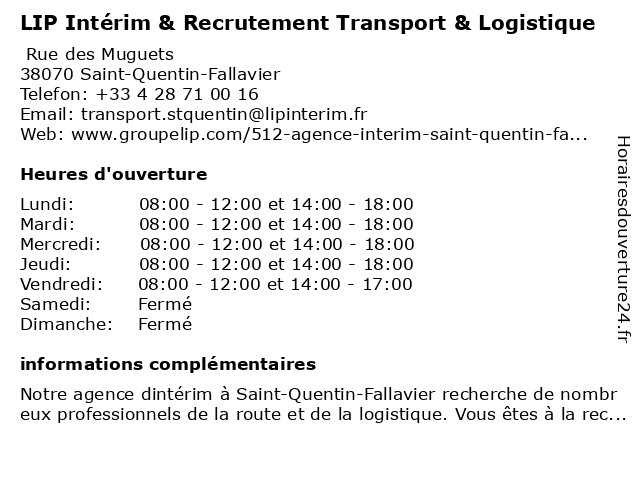 1 Groupe Lip (Distance: 0,19 km) s/n Rue des Muguets, 38070 St Quentin Fallavier agence, emploi, groupe, interim, lip, recrute 2 R.A.S Intérim Saint-Quentin-Fallavier (Distance: 0,42 km) 70 Rue des Salvias, 38070 Saint-Quentin-Fallavier fallavier, intérim, quentin, r.a.s, saint 3 Corallis Intérim (Distance: 0,73 km) 21 Avenue des Arrivaux, 38070 Saint-Quentin-Fallavier agence, cdd, cdi, corallis, emploi, formation, intérim, travail 4 Openway Transport (Distance: 0,96 km) 1 Rue du Ruisseau, 38070 Saint-Quentin-Fallavier openway, transport 5 Charvin Logistique - Site Alexandrie (Distance: 1,56 km) 25 Bis Rue du Mollaret, 38070 Saint-Quentin-Fallavier alexandrie, charvin, envois, fret, groupe, logistique, services, site, société, transports 6 Agence d'Intérim Manpower Saint-Quentin-Fallavier Logistique (Distance: 1,65 km) 10 Rue de Savoie, 38070 Saint-Quentin-Fallavier agence, agence de recrutement, agence intérim, agence pour l'emploi, cabinet de recrutement, cdi, d'intérim, fallavier, intérim, logistique, manpower, quentin, recrutement, saint |