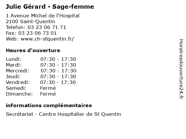 1 Julie Quinet - Sage-femme (Distance: nan km) 1 Avenue Michel de l'Hospital, 02100 Saint-Quentin femme, julie, médecins, médicaments, quinet, sage, santé, secrétariat, spécialiste 2 Julie Vanheuverswyn - Sage-femme (Distance: nan km) 1 Avenue Michel de l'Hospital, 02100 Saint-Quentin femme, julie, médecins, médicaments, sage, santé, secrétariat, spécialiste, vanheuverswyn 3 Gérard Pananceau - Infirmier (Distance: 0,02 km) 1 Avenue Michel de l'Hospital, 02100 Saint-Quentin consultation, docteur, gérard, infirmier, med, médecin, pananceau, traitement 4 Julie Doloy - Podologue (Distance: 2,14 km) 2 Rue de Strasbourg, 02100 Saint-Quentin beaurin, doloy, emmanuel, et, julie, pieds, podologue, pédicure, soins 5 École primaire publique Gérard Frison (Distance: 5,55 km) - Rue de Picardie, 02100 Lesdins cours, education, frison, gérard, primaire, publique, services, École, école 6 École primaire publique Rue Gérard (Distance: 6,57 km) - Rue Jean Jaurès, 02420 Lehaucourt ecole, education, gerard, gérard, maternelle, primaire, publique, rue, services, école |