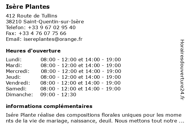 1 Nature Plantes Harmonie (Distance: 13,91 km) 27 rue Louis Gagnière, 38950 Saint-Martin-le-Vinoux fleuristes, fleurs, harmonie, jardineries, nature, paysagistes, plantes, pépinières 3 Pharmacie du Jardin des Plantes (Distance: 18,93 km) 4 Place Bir Hakeim, 38000 Grenoble aromathérapie, des, du, heboristerie, jardin, médical, médicaments, ordonnances, paramédical, parapharmacie, pharmacie, pharmacien, plantes, santé, traitement, traitements 4 GAMM VERT (Distance: 11,23 km) 71 Boulevard de Charavines, 38500 Voiron animalerie, gamm, jardin, jardinerie, mobilier de jardin, plantes, pépinière, vert 5 Végétal en Vercors (Distance: 11,27 km) 244 rue de Pierre Taillée, 38880 Autrans-Méaudre-en-Vercors arbustes, en, fleurs, plantes, pépinières, vercors, visite, végétal 6 Flore et Sens (Distance: 17,29 km) 21 route de Grenoble, 38250 Lans en Vercors bouquets, composition, et, fleuriste, fleurs, flore, plantes, sens |