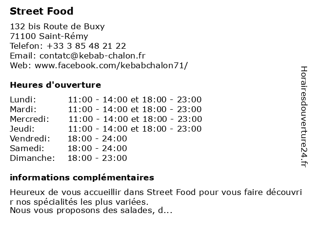 | Mardi | 11:00-14:00 et 18:00-23:00 |