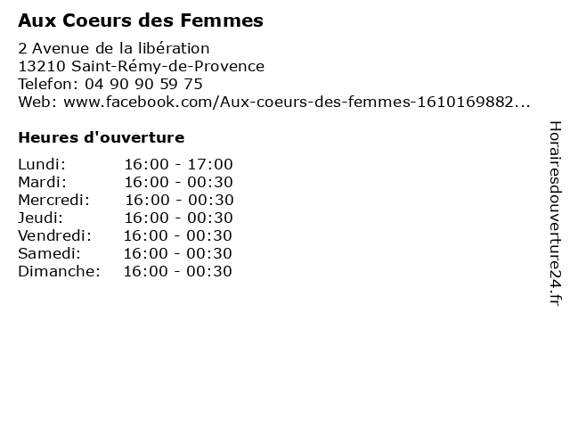 | Mercredi | 16:00-00:30 |