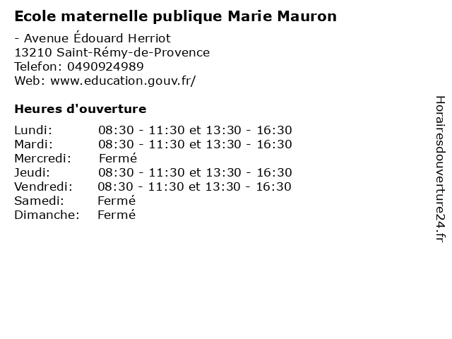 Lundi | 08:30-11:30 et 13:30-16:30 |