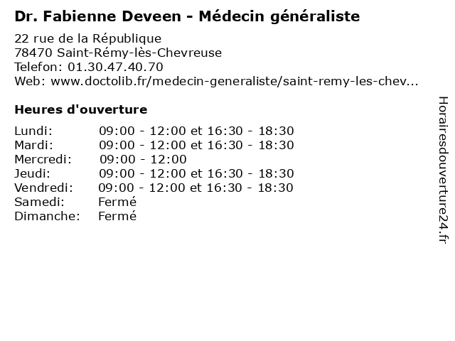| Vendredi | 09:00-12:00 et 16:30-18:30 |
