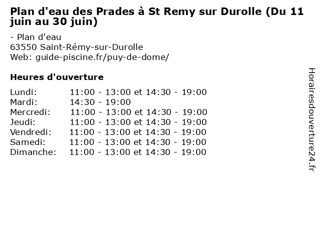 | Samedi | 11:00-13:00 et 14:30-19:00 |