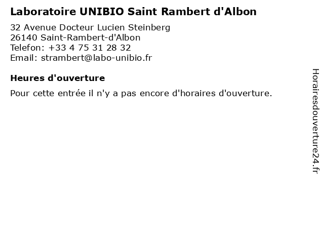 | Appeler Laboratoire UNIBIO Saint Rambert d'Albon | |