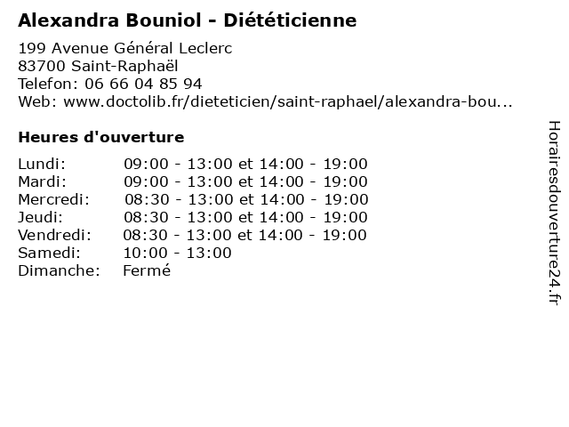 | Mercredi | 08:30-13:00 et 14:00-19:00 |