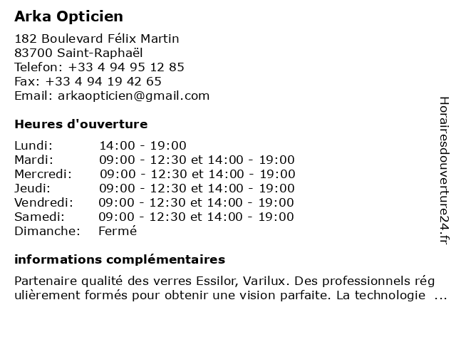| Mercredi | 09:00-12:30 et 14:00-19:00 |