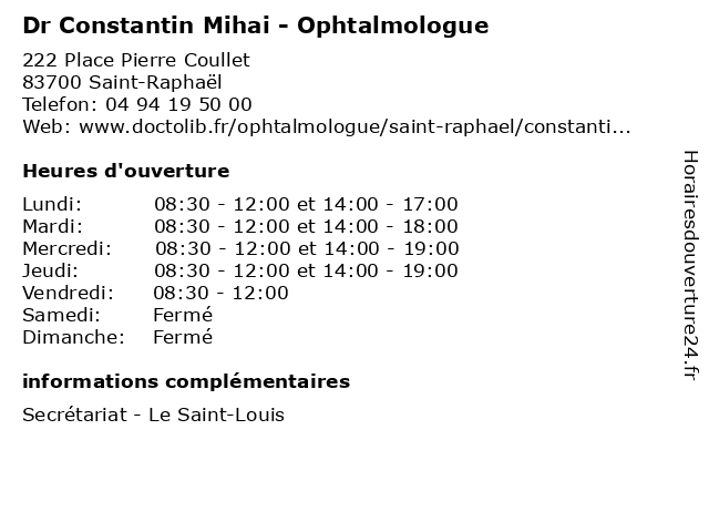 | Mercredi | 08:30-12:00 et 14:00-19:00 |